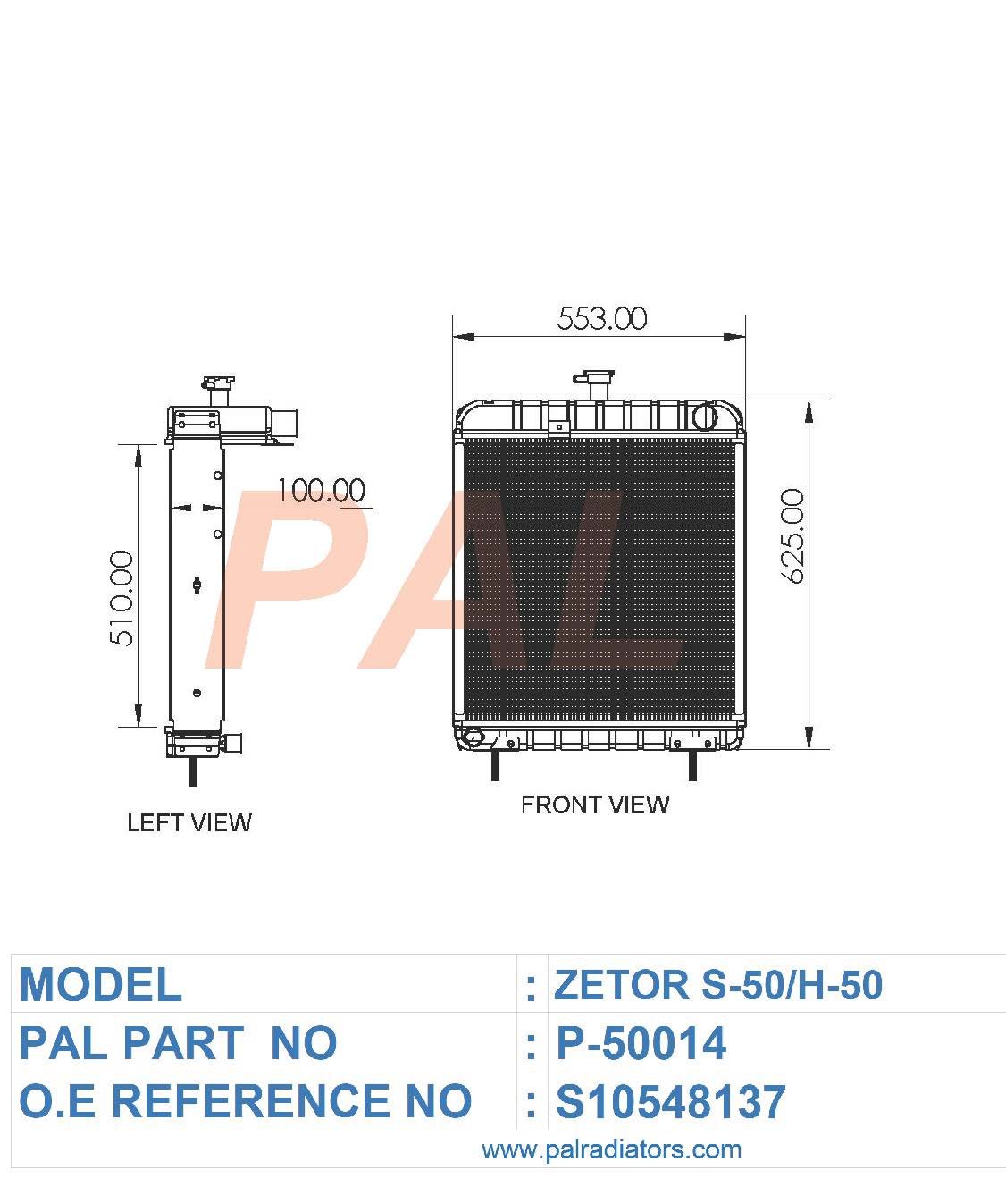Model: Zetor PART NO: P-50014 FIT TO: S-50, H-50 O.E REF NO: S10548137 BRAND: ZETOR