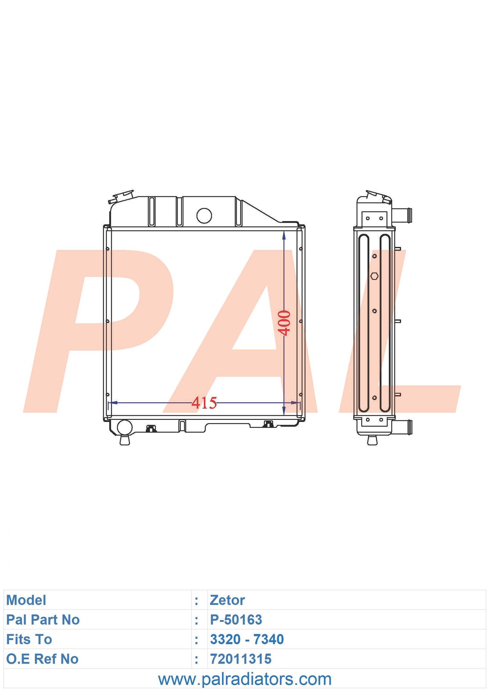 Model: Zetor PART NO: P-50163 FIT TO: 3320 - 7340 O.E REF NO: 72011315 BRAND: ZETOR