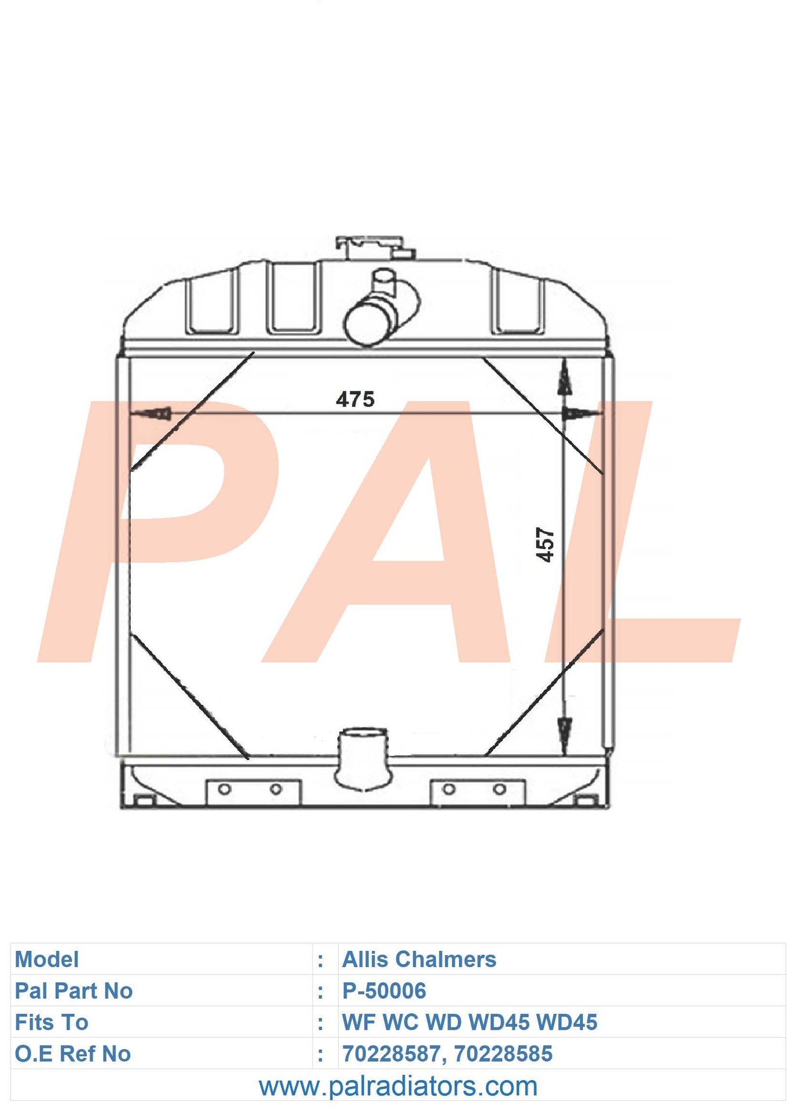 Model: ALLIS CHALMERS PART NO: P-50006 FIT TO: WF WC WD WD45 WD45 O.E REF NO: 70254891, 70228587, 70228585, 359550, 7025489, 70228585V, VPE3025 BRAND: ALLIS CHALMERS