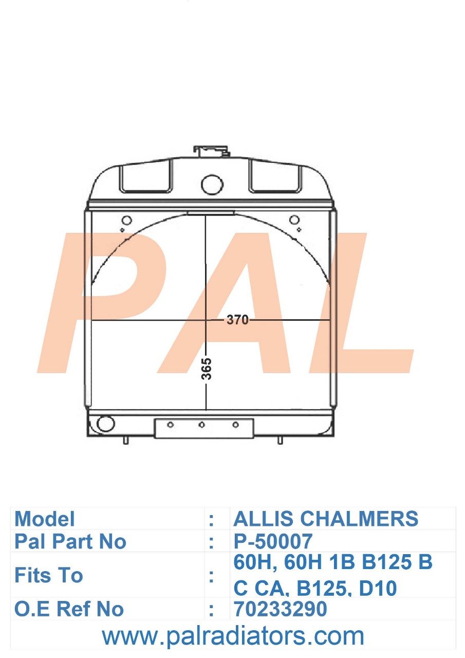 Model: ALLIS CHALMERS PART NO: P-50007 FIT TO: 60H , BA125 , D10 , O.E REF NO: 233313, 359551, 359551-A, 70214337, 70214337-A, 70233232, 70233232-A, 70233290, 70233290-A BRAND: ALLIS CHALMERS