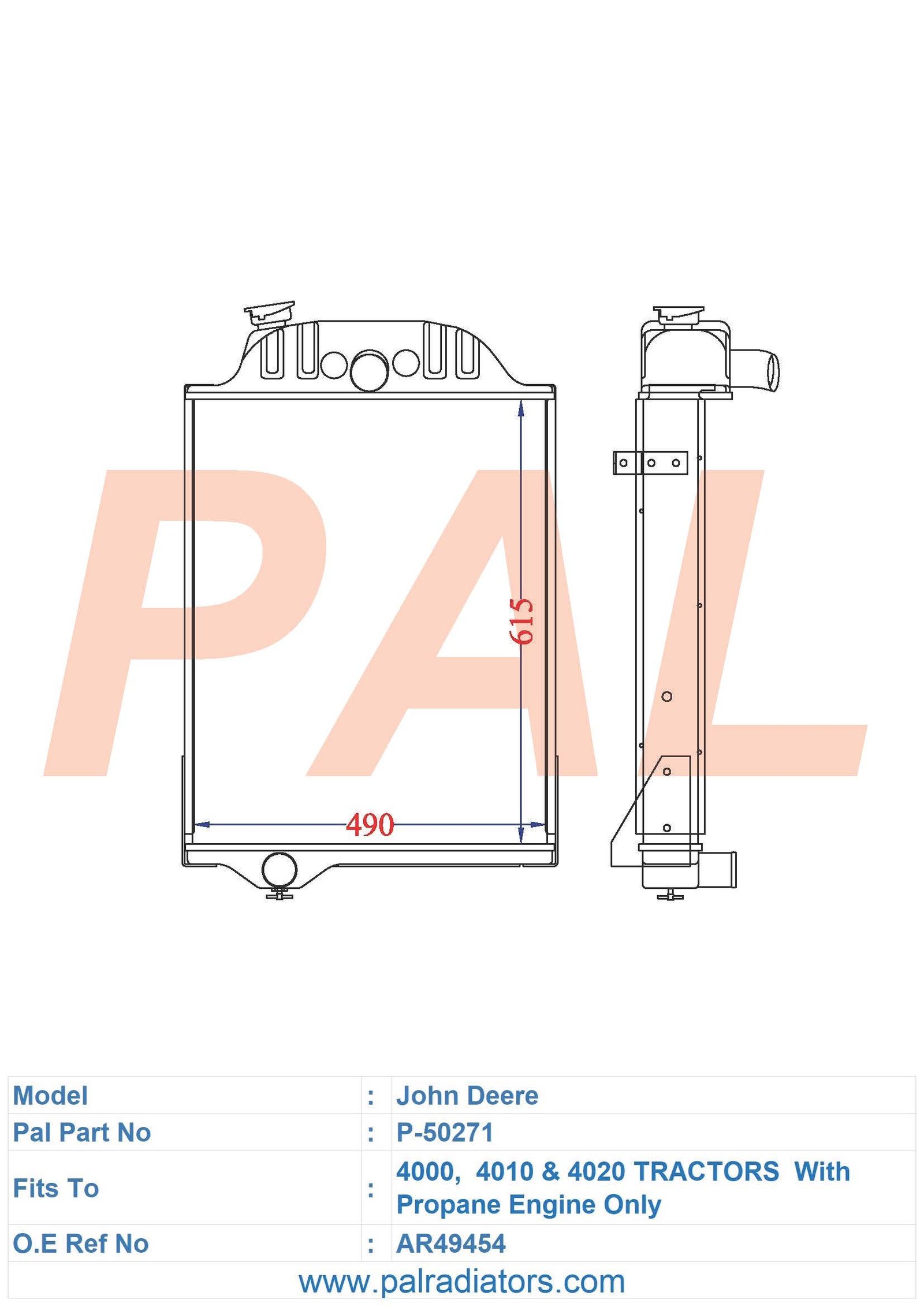 Model: John Deere PART NO: P-50271 FIT TO: 4000, 4010 & 4020 TRACTORS With Propane Engine Only O.E REF NO: AR49454 BRAND: JOHN DEERE
