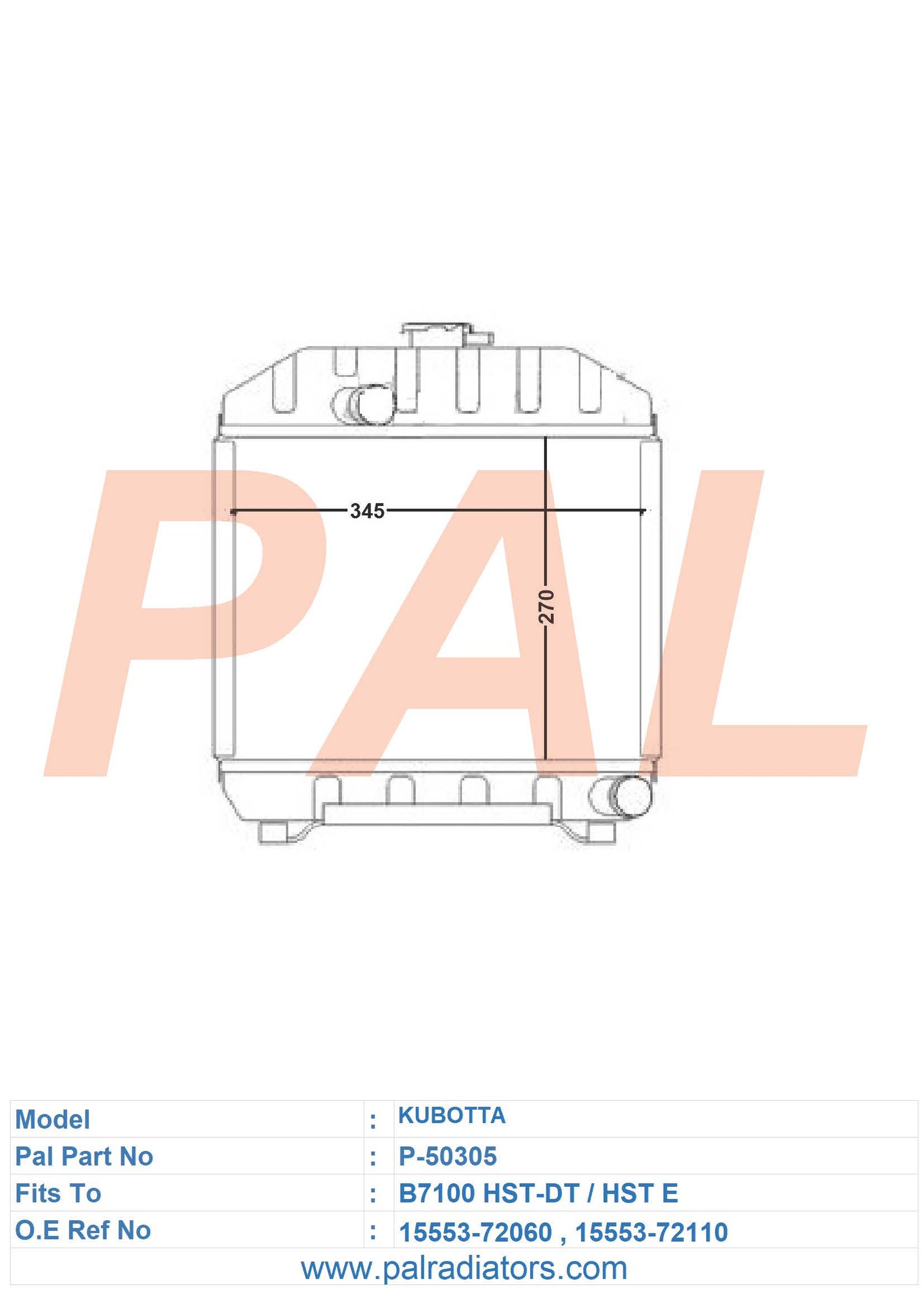 Model: Kubotta PART NO: P-50305 FIT TO: B7100 HST DT,B7100 HST E O.E REF NO: 15553-72060 BRAND: KUBOTTA