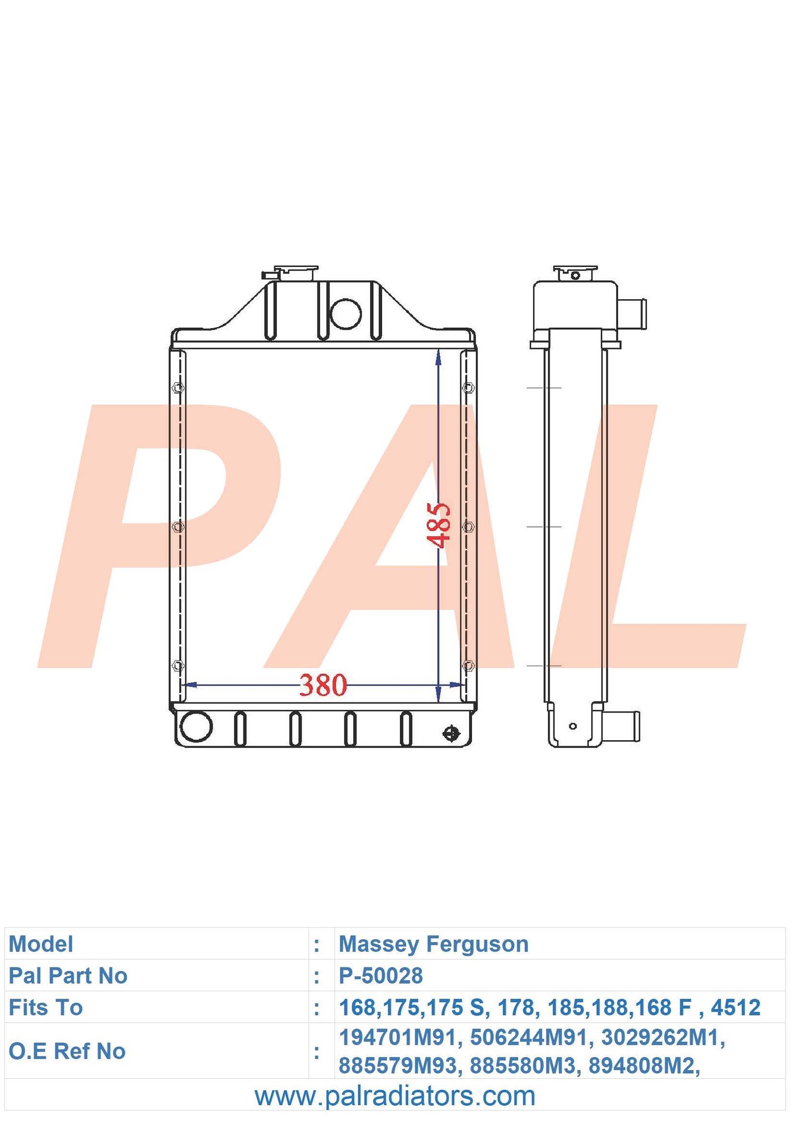 Model: Massey Ferguson PART NO: P-50028 FIT TO: 168,175,175 S, 178, 185,188,168 F , 4512 O.E REF NO: 194701M91,506244M91 /3029262M1,885579M93, 885580M3,894808M2, 964098M1 BRAND: MASSEY FERGUSON