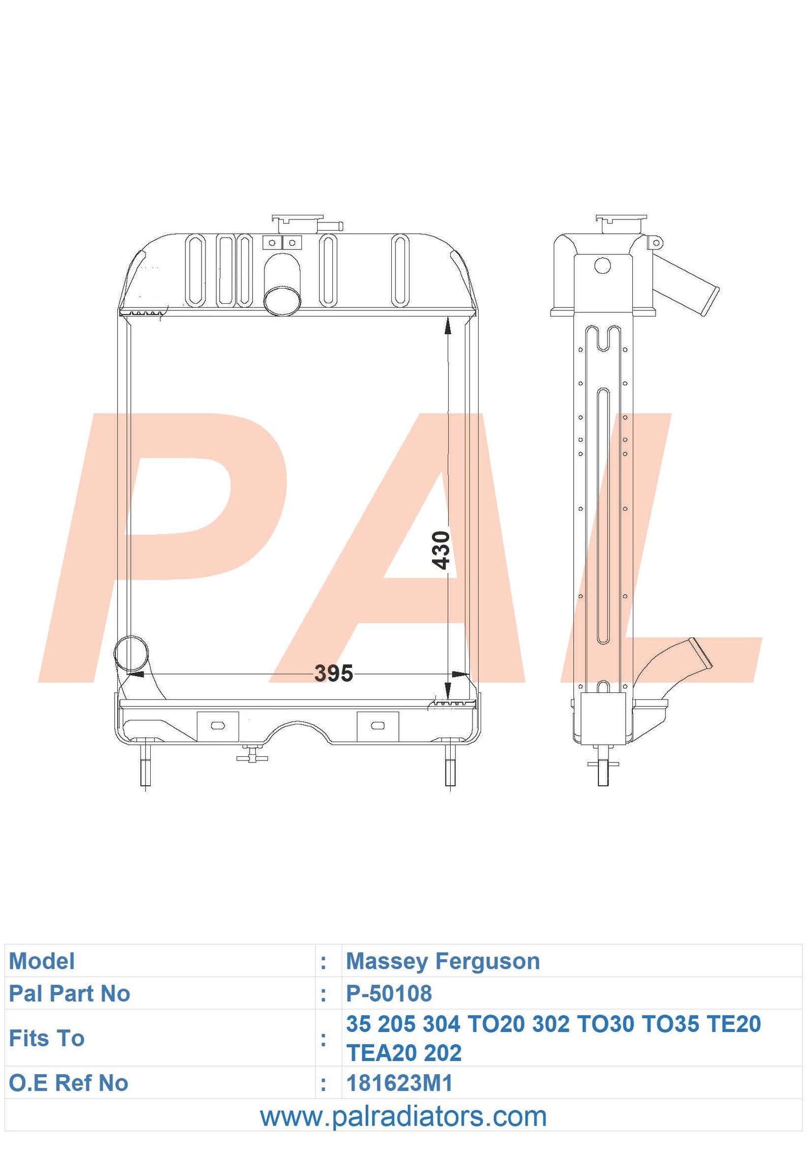 Model: Massey Ferguson PART NO: P-50108 FIT TO: 35 205 304 TO20 302 TO30 TO35 TE20 TEA20 202 O.E REF NO: 181623M1 BRAND: MASSEY FERGUSON