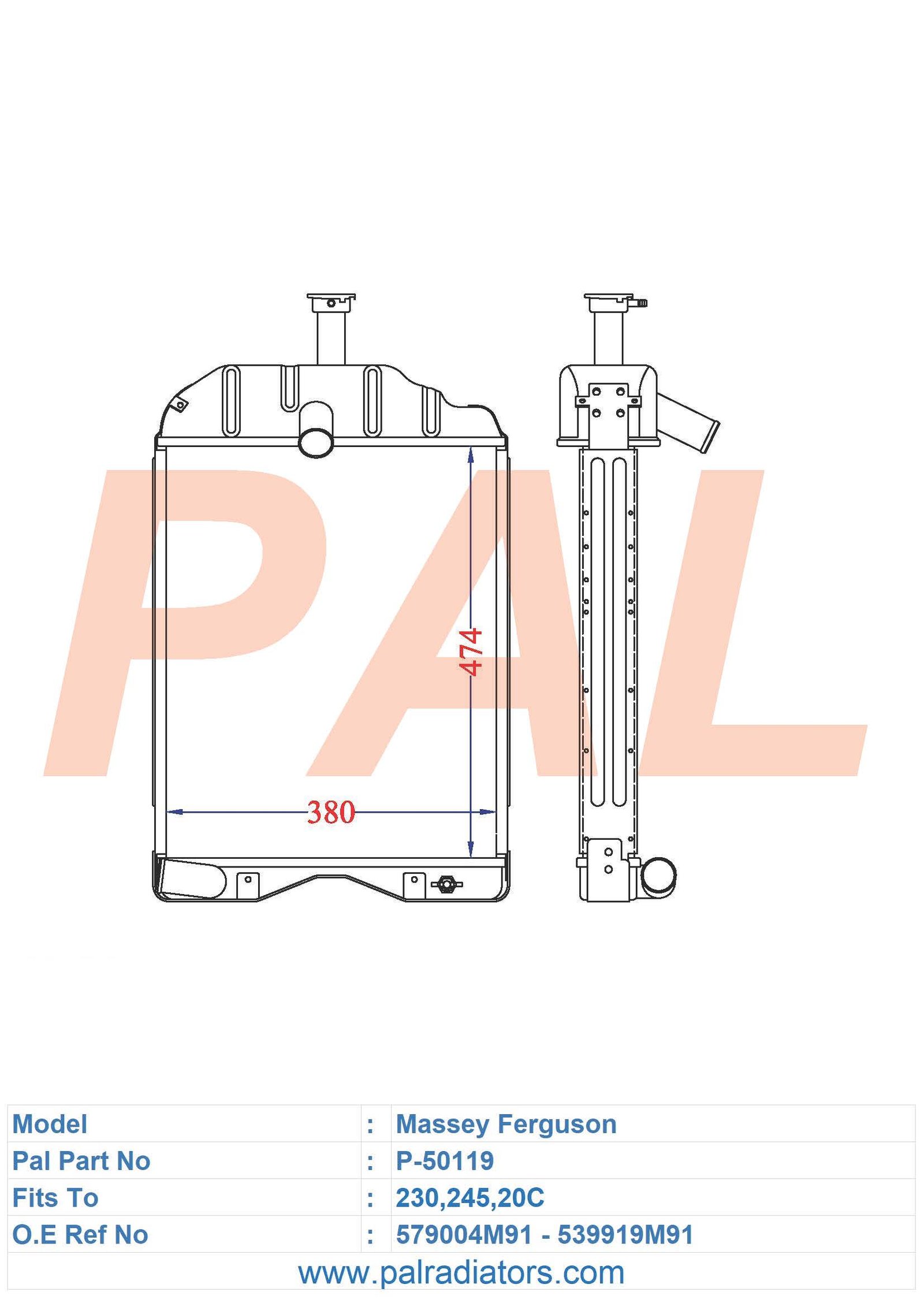 Model: Massey Ferguson PART NO: P-50119 FIT TO: 230,245,20C O.E REF NO: 579004M91 - 539919M91 BRAND: MASSEY FERGUSON