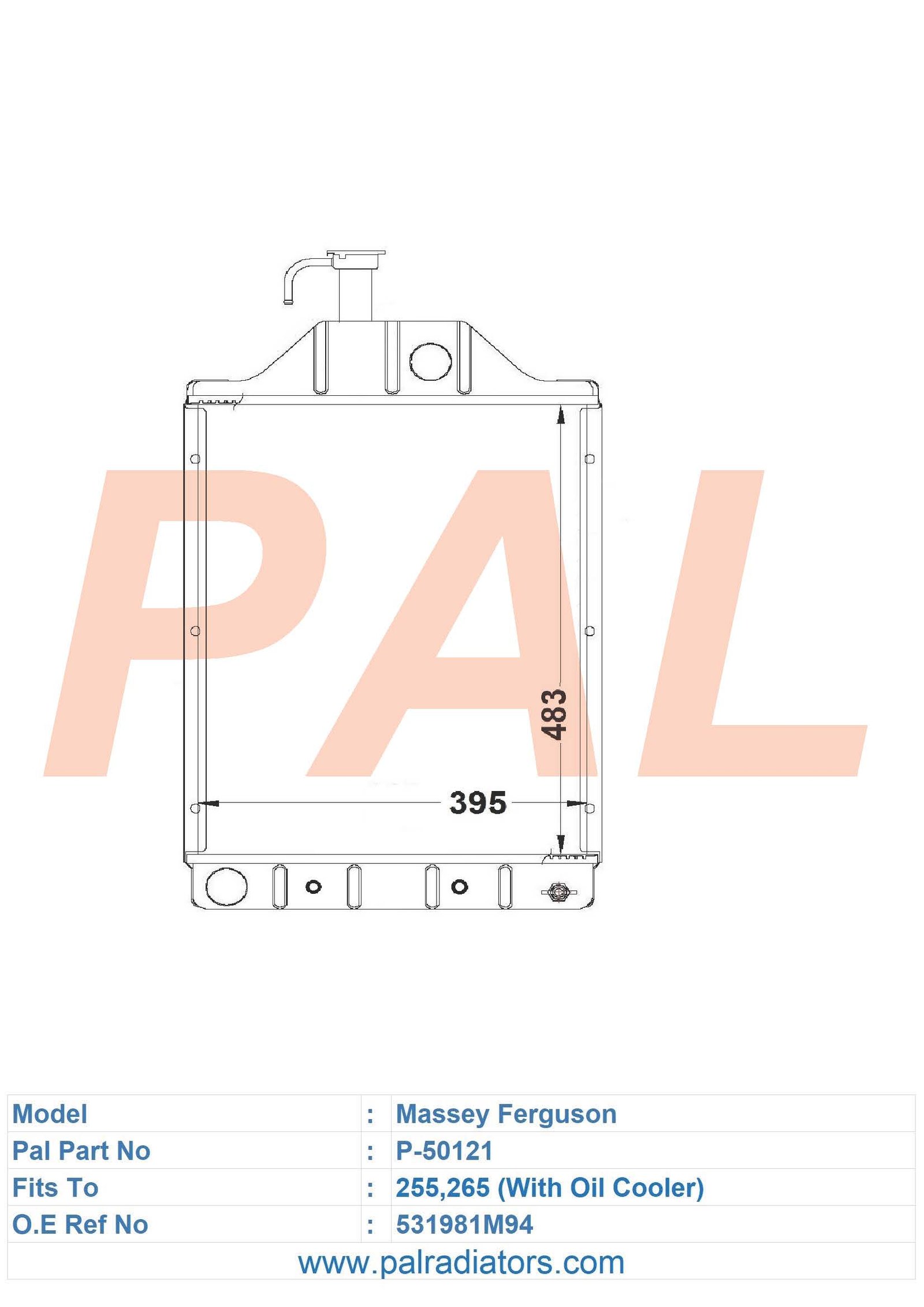 Model: Massey Ferguson PART NO: P-50121 FIT TO: 255,265 (With Oil Cooler) O.E REF NO: 531981M94 BRAND: MASSEY FERGUSON