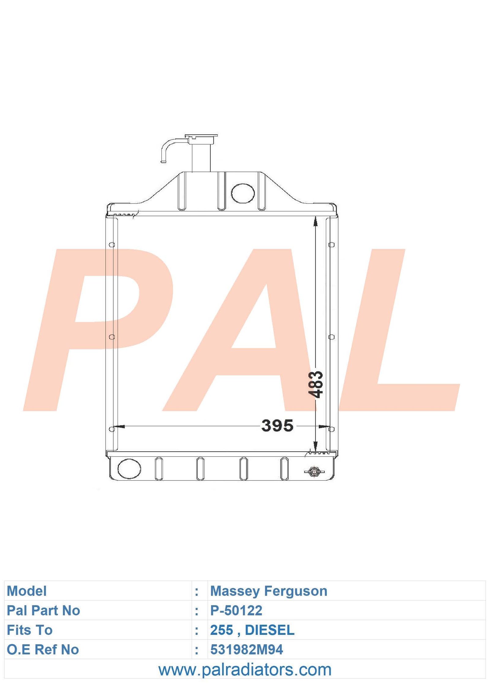 Model: Massey Ferguson PART NO: P-50122 FIT TO: 255 Diesel O.E REF NO: 531982M94 BRAND: MASSEY FERGUSON